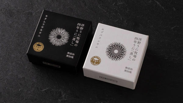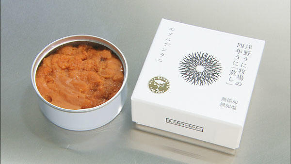 稚うにから育て水揚げまで四年、「洋野うに牧場」で仕上げた旬のキタムラサキウニ、エゾバフンウニを、水揚げしてすぐ、生うにのまま缶に詰め蒸し上げています。無添加・無加塩。