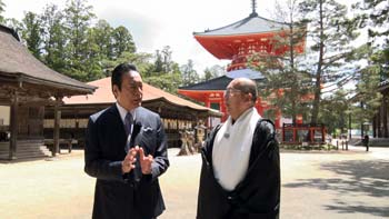 高橋さんは、数十万基の供養塔等が並ぶ奥之院を訪れた後、密教の世界を表した壇上伽藍を体験。さらに高野山真言宗管長の長谷部真道猊下との語り合いにより、高野山や空海の魅力を紹介します。