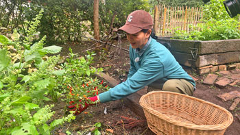 友の庭では、収穫時期を迎えたハーブガーデンがとっても元気!黒谷さん、ハーブの収穫をしながら、冬に備えてのお手入れをしていきます。
