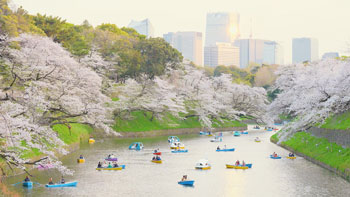 日本武道館近くの千鳥ヶ淵の桜を紹介します。毎年130万人もの人で賑わう都内屈指の桜の名所。ソメイヨシノをはじめとする約260本の桜が咲き誇り、散策路からの眺めはもちろん、ボートに乗って下から桜を見上げる楽しみ方も人気です。