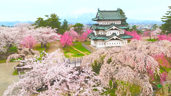 ソメイヨシノや八重桜など52品種約2,600本の桜が咲き誇る弘前公園を紹介します。弘前城と桜の情緒溢れる共演に、国内外から多くの観光客が訪れます。満開の時期に、特に人気なのは、西濠に300mにわたって続く「桜のトンネル」。最近では、2本の桜の枝が重なり、空にハート型を描くように見える"隠れスポット"も話題です!