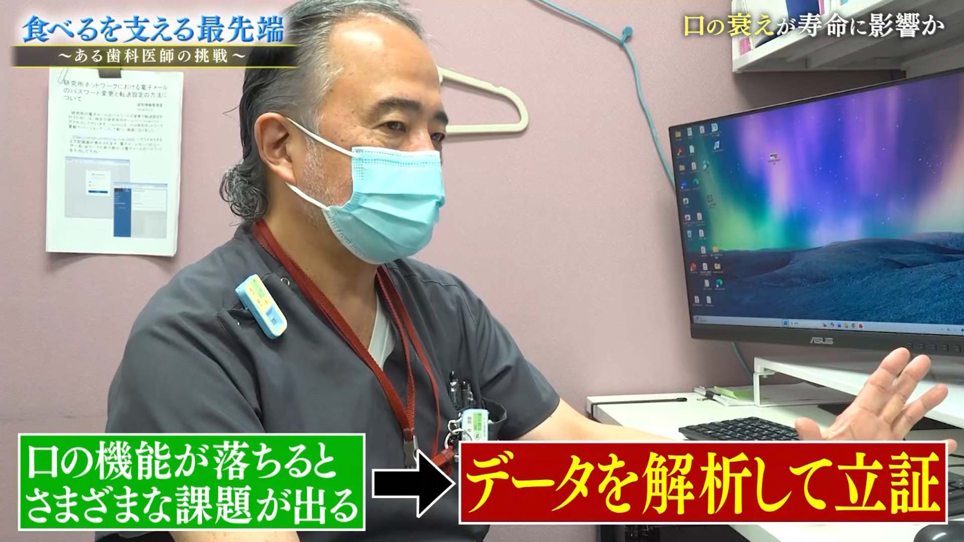 “食べる”を支える歯科医師の活動を追いかけるドキュメンタリー。東京都健康長寿医療センターの歯科医師・平野浩彦氏を追う。終末期、“自らの口で食べたい”という願い叶わず亡くなっていく患者を目の当たりにしてきた平野氏。食べる機能を長く維持するために出来ることは何か。臨床を通して、食べる力を加速度的に低下させる要因として「オーラルフレイル」に着目。老年歯科をけん引する最先端の研究に迫る。