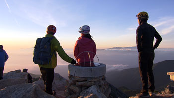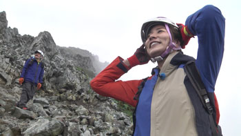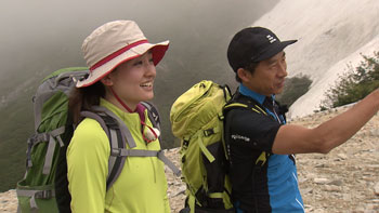 2019年には、番組MCの槇あやなさんが、ノルディックスキー元・日本代表で登山家の荻原次晴さんのガイドで、まだ雪が残る常念岳に登りました。雪道の登り方、川の渡り方を教わりながら、標高2857メートルの頂上へ。達成した瞬間、思わず涙が…。