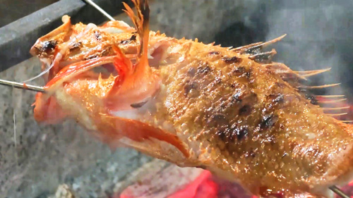 海の幸・山の幸・肉・魚・野菜など全てが新鮮。なかでもお店名物である「特大キンキ」の炭焼きを肴に、お店オリジナルの日本酒をいただく。香ばしく焼き上げ、旨味を閉じ込めたキンキと日本酒は極上の組み合わせ。