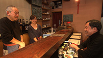 香林坊の小川が流れる小路を歩くとモダンな居酒屋が現れる。「猩猩(しょうじょう)」だ。鴇色を基本にした温かな雰囲気の店。ご主人は誠実な人柄で、若い女性たちがせっせと働く。日本酒に力を入れるが銘柄は固定せず常に30種ほど。酒は、純米山田錦米を使った地酒の"五凛"。肴は、烏賊(いか)を発酵熟成させた魚醤でいただく"いしるきゅうり"で決まり!今夜は加賀百万石の城下町でふらりほろ酔う...