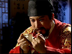 一方、燕山君(ヨンサングン)の暴君ぶりは激しさを増していった。生母ユン氏毒殺に関わった人物を探し出すべく、全土に当時の武官の似顔絵が張り出されることに。ある日、村の市に出かけたチョンスはチャングムにせがまれ、相撲に挑む。しかし騒ぎが起こり、チョンスは手配中の武官であることがばれ捕まってしまう。その家族まで処罰の対象であることからミョンイはチャングムを連れ逃亡。追っ手から逃れつつ、連行されたチョンスの後を追い漢陽(ハニャン)へ向かう。
