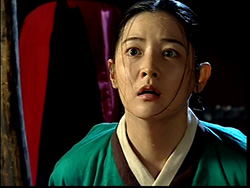 菜園近くには護衛部隊の練兵場があり、菜園に向かうチャングムは過日傷の手当てをしたミン・ジョンホとすれ違う。傷から回復し職場に復帰したチョンホは、手当てをしてくれた命の恩人である女性の落し物、ノリゲを大切に持っていた。