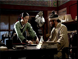 貴重な薬草キバナオウギの栽培に成功したチャングムはその功績が認められ、菜園から水剌間(スラッカン)に戻れることに。チョン・ウンベクの使いで書庫へ立ち寄ったチャングムは、ミン・ジョンホと初めて言葉を交わす。