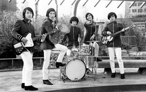 昭和40年代、わずか3年という短い活動期間でGSの伝説的存在となったザ・テンプターズ。リーダーでギターボーカルの松崎由治さん、ベースの高久昇さん、ボーカルの萩原健一さん、ギターの田中俊夫さん、ドラムの大口広司さんがメンバーでした。