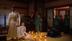 厄受けの最中にイ・フォン(王)が目を覚まし、「何者だ!」とウォル(ヨヌ)を問いただす。さらにフォンはウォルを間者ではないかと疑い、執拗にウォルを追及する。それに対しウォルは「すべては王様の健康回復のため」と弁明するが...
