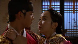 先王の尚膳の住まいを訪ねたイ・フォン(王)はその帰路せっかくだからとお忍びで都を散策する。そこで偶然にも、ウォル(ヨヌ)と出会い人形劇を見ることに。それを知った陽明君は、嫉妬の炎を激しく燃やす。一方厄受けの巫女を疎ましく思うユン・ボギョン(王妃)は、突然王の寝所にやって来る。しかしそこで王妃が見たのは厄受けの巫女ウォルではなく合歓の札の巫女であった。王妃はそれとは知らず...