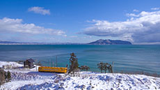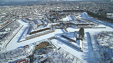 木古内では佐女川神社で真冬に冷水を浴びて鍛錬する驚きの神事に遭遇。渡島当別駅で途中下車し、延々と続く雪の一本道の先にあるトラピスト修道院までの美しい景色。終着の五稜郭駅で鉄印帳一番目の道南いさりび鉄道の鉄印をもらいます。