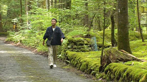 軽井沢が避暑地として発展するきっかけを作った、カナダ人宣教師ゆかりの「ショー記念礼拝堂」を出発した中山さん、早速見つけた創業400年という老舗旅館に立ち寄ります。定宿にしていた、名だたる文豪たちの知られざるエピソードや、江戸時代に使っていた銭箱に感銘を受けます。旧軽井沢銀座通りの老舗喫茶店では、自家製ジャムを使った「高いがうまいお菓子」に舌鼓!また、創業100年を超える写真店では、外国人別荘地として賑わっていた昔の軽井沢の写真に興味津々!記念写真も撮影しました。そして地元で人気のパン店では、70年代軽井沢に滞在していたジョン・レノンが愛した「フランスパン」の味わいに感動!当時、オノ・ヨーコとよく散歩していたという小道「ハッピーバレー」にも足を運びます。カラマツの林に囲まれ、苔むした石垣と石畳が続く涼しい小道で、ひとときの静寂を堪能します。さらに、人気ドイツ料理店では、「軽井沢の鹿鳴館」と呼ばれた三笠ホテルの味を復活させた「幻のカレー」をいただきます。政財界の大物たちに親しまれていたという、スパイシーなカレーに大満足です!もちろん、軽井沢ならではの絶景スポットも巡ります!