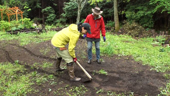 そして、いざ穴削りを始めると、これが想像以上に大変な作業。しかも大雨予報? 波乱の小道づくりプロジェクト。