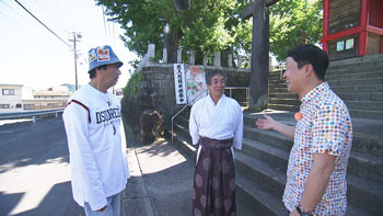 今回の舞台は福岡県大牟田市の宮原町。世界文化遺産の一つとしても知られている三池炭鉱の「宮原坑」近くの住宅地をタビします。別名「夢まくら神社」とも呼ばれる駛馬天満宮前で宮司とおしゃべりしたあと、狭い路地に入ったご両人。お会いした地元の皆さんは、やはり炭鉱と関わりのある方ばかりで、ご主人を炭鉱の事故で亡くしたお母さんや、長年炭鉱のお仕事に就かれた男性のリアルなお話に驚きの連続でした。最後にお会いしたご夫婦も、炭鉱で町が栄えていたころ青果店を営んでいたそうで、賑わっていた当時の様子を語ってくれました。最後は鳥居の隙間から「宮原坑」が見えると聞き、再び駛馬天満宮へ!その姿を眺めつつ、日本の一時代を支えた皆さんの姿に思いをはせながらタビを終えました。