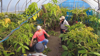 さらに集落をブラリしていると、畑で作業をしているご夫婦に遭遇。畑にお邪魔してみると、栽培しているのはドラゴンフルーツやアボカドといったとても珍しい作物。しかも出荷するわけではなく、老後の楽しみとして作っているんだとか。そんな素敵なアフターライフに前川もうらやましさしきり。さらに、前川が以前訪れたことがある桜島の温泉「白浜温泉」の話で大盛り上がり!今回も笑顔まんてんのタビとなった。