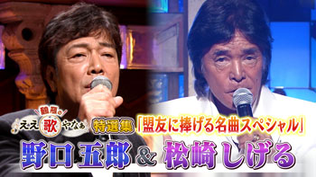 今回は特選集!盟友に捧げる名曲SPと題して、野口五郎さんと松崎しげるさんの出演回を総集編でお送りします。