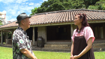 本島中部・沖縄市にある沖縄こどもの国の一郭、「ふるさと園」の中には、移築された伝統的な古民家・旧久場家住宅主屋などが展示されています。ゲスト解説者として沖縄の建築界の重鎮である中本清さんを迎えて、澪花ちゃんがこの古民家について建築的な特徴をあれこれ教えてもらいます。