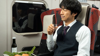 富山駅前の路上で立ち尽くす高宮進。路面電車で港町・岩瀬地区にやって来ると、遠くにいるトランクの男に気づく。進を居酒屋新幹線に誘った師匠に違いないと、男の後を追って入ったのは酒屋。店主に薦められて純米大吟醸を買い、富山湾展望台に行くと、目の前に広がる雄大な絶景に圧倒される。その後も、白えび天ぷら、ほたるいか粕漬、かじきの昆布〆、特選ますのすしなど、立山連峰の雪解け水が育んだ酒と肴を仕入れるのだった。