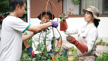 また、ちょうど1年と少したったパーゴラのお手入れでは、高さのある見た目も華やかな「ハンキングバスケット」づくりにも挑戦しますよ。