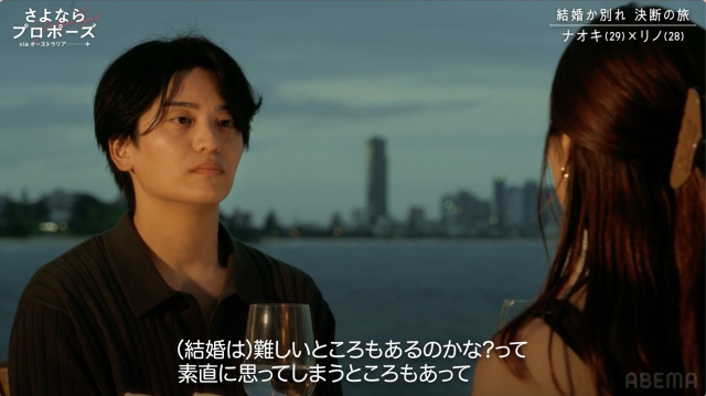 ABEMAは、オリジナル結婚決断リアリティ番組『さよならプロポーズ via オーストラリア』の第8話を、23日午後9時より放送する。