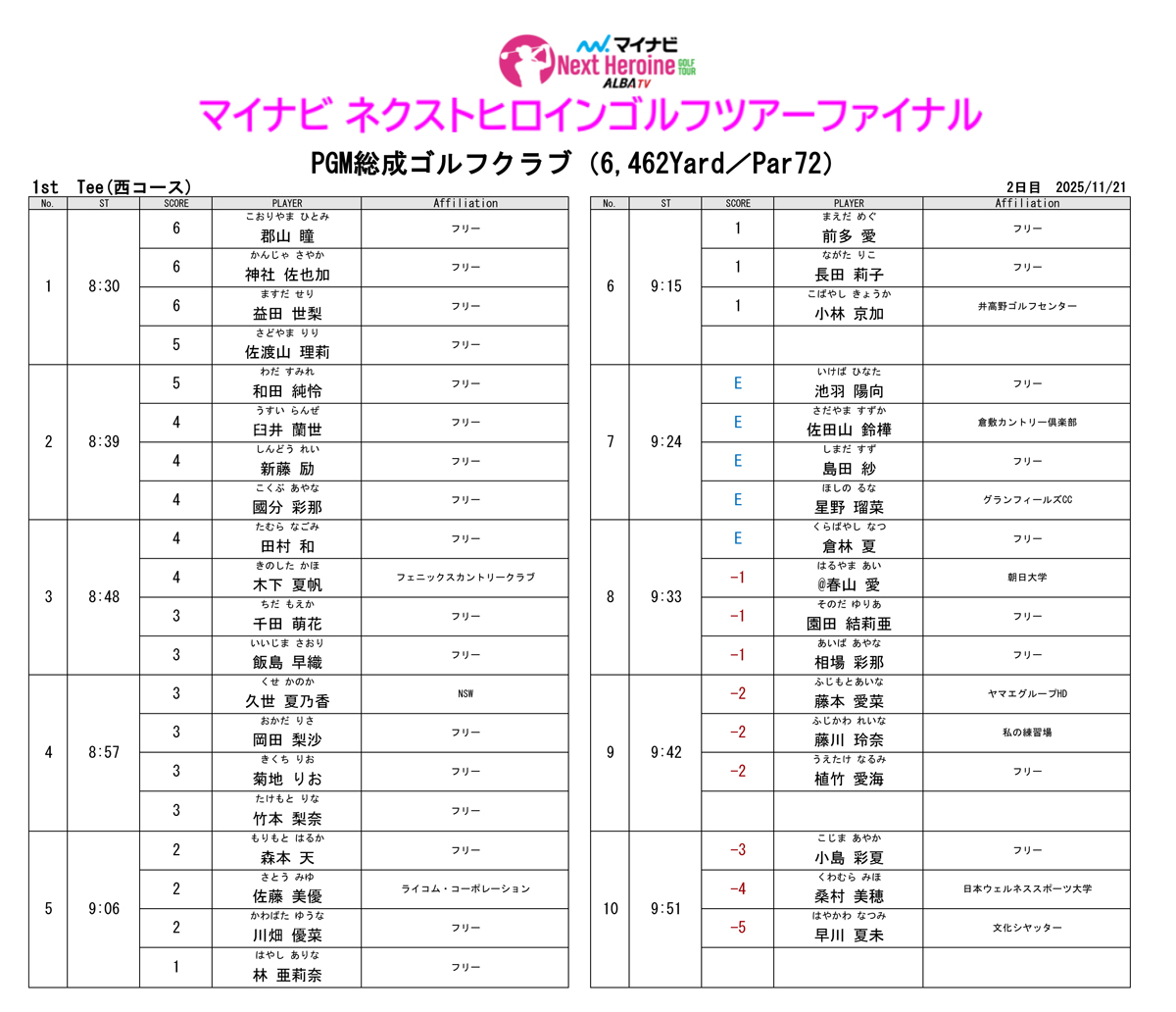 ツアー最終戦となる「マイナビ ネクストヒロインゴルフツアーファイナル」はツアー最大となる優勝賞金500万円、賞金総額1000万円、年間のポイントランキング上位30名が"女王"の座をかけて戦いに挑みます。