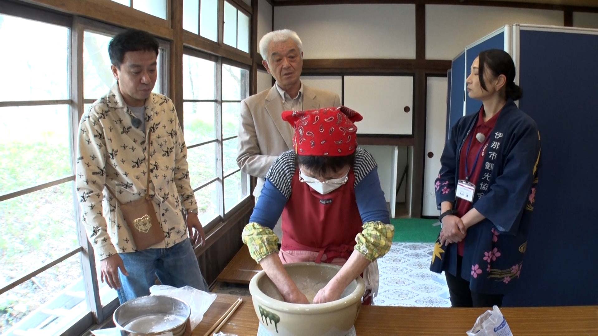 「高遠そば」の原点で、高遠の芝平地区の家庭料理だった「芝平そば」。今は打てる人も少なくなったこのそばを、高遠そば愛好会の皆さんからふるまってもらえることに。