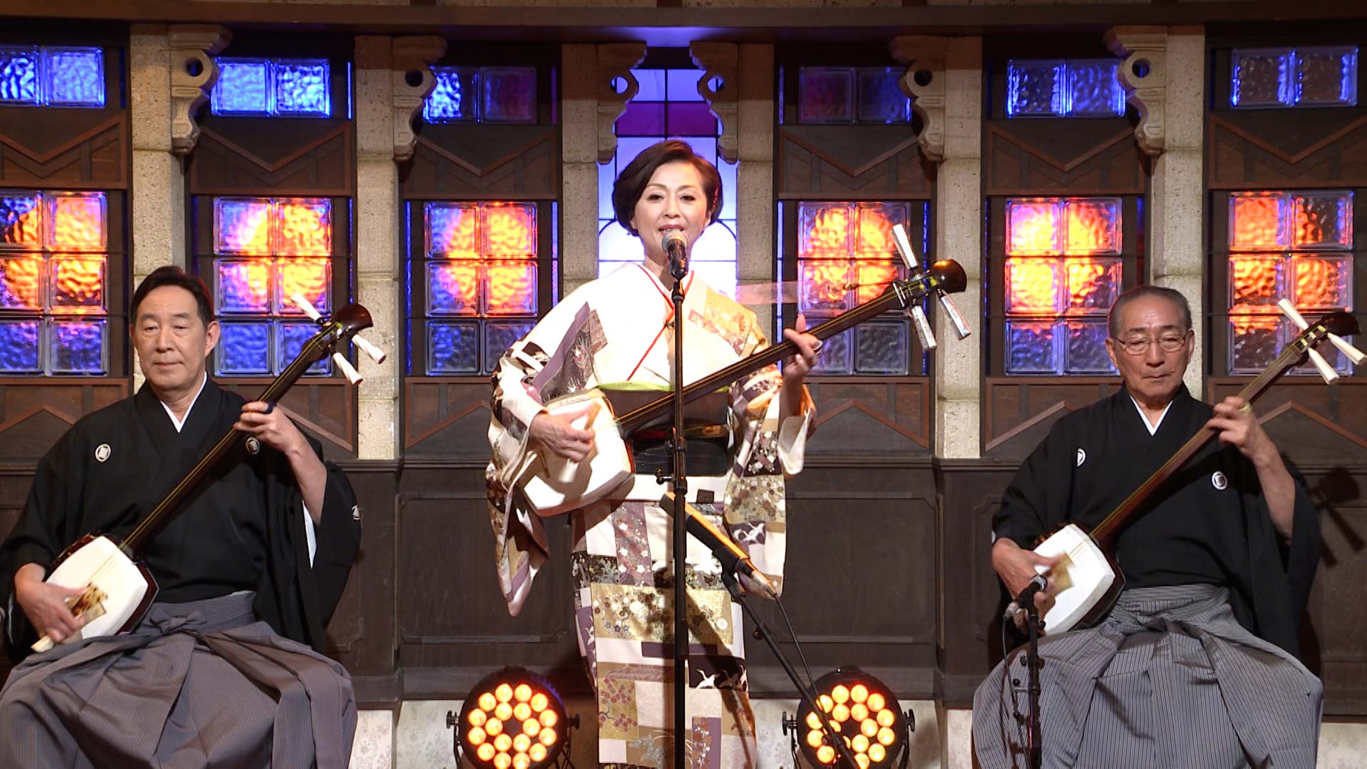 迫力あるバチさばきと立ち弾きでオリコン演歌チャート1位を獲得した「じょんから女節」を、澤田流家元・澤田勝秋さん、澤田流・澤田勝成さんとともに披露していただきます。