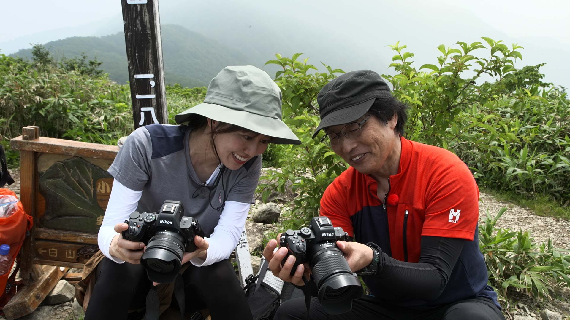 登山初心者の宮﨑さんと登山経験豊富な萩原さんが、カメラで山の風景や高山植物を撮影しながら山頂を目指し、荒島岳に息づく豊かな自然と山の魅力を余すことなく紹介します。